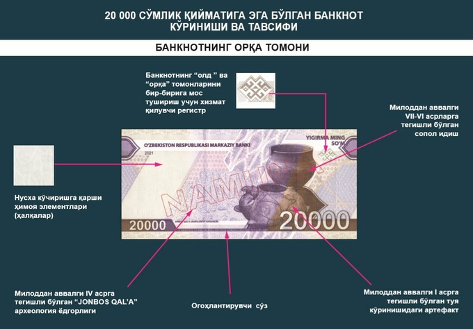 Oʻzbekiston Respublikasi Markaziy banki 2021-yilning 14-iyunidan boshlab nominal qiymati 2 000 soʻm va 20 000 soʻm boʻlgan banknot koʻrinishidagi yangi pul belgilarini muomalaga chiqarilishi toʻgʻrisida qaror qabul qilinganligini maʼlum qiladi.