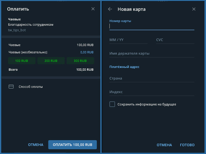Payments 2.0 yaqinda chiqdi. Asosiy muammo toʻlov tizimlarining Telegram bilan oʻzaro aloqada boʻlmasligi. Biz sinov tariqasida ЮMoney-ni tanladik.