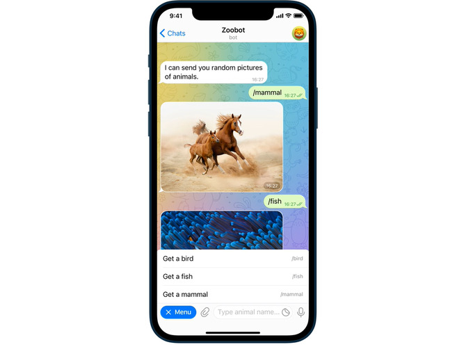 Botlar bilan muloqot qilish soddalashdi: maxsus menyu orqali buyruqlarni koʻrish va yuborish mumkin. Bundan tashqari, endi bot tuzuvchilari kiritish maydonchasida nima yozilishi talab qilinishi tushunarliroq boʻlishi uchun buyruq uchun ishoralarni tanlashi mumkin.