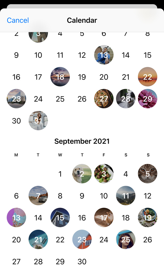 Umumiy media endi kalendar sifatida ochilishi mumkin. Buning uchun Media yorligʻining yuqori oʻng burchagida yangi menyuni oching yoki shunchaki sana koʻrsatilgan blokni bosing.