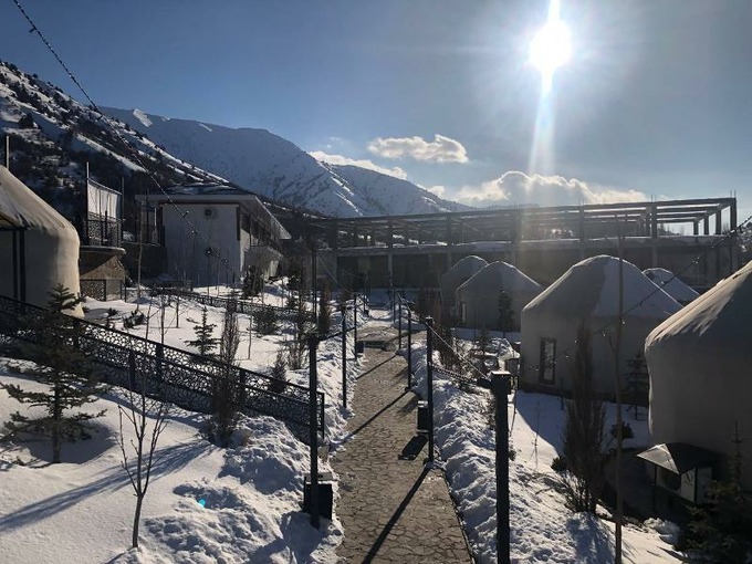 Bino 5914 kv.metr, umumiy foydalanishga yaroqli maydoni esa 6198 kv.metrni tashkil etadi. Hududda 10 ta oʻtov, 14 ta mehmonxona, basseyn, turk saunasi, bilyard va tennis zallari, shuningdek, 100 oʻrinli kafe mavjud. Gaz, elektr, suv bor, lekin kanalizatsiya yoʻq.