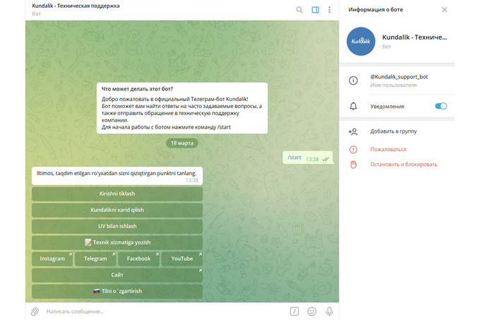 Kundalik jamoasi foydalanuvchilar uchun elektron pochta xabarlarini joʻnatish yoki telefon orqali call-markazga qoʻngʻiroq qilish imkoniyatiga ega boʻlmasdan turib, Telegram botini yaratdi, dedi Kundalik texnik qoʻllab-quvvatlash boʻlimi rahbari Xilola Izzatova.
