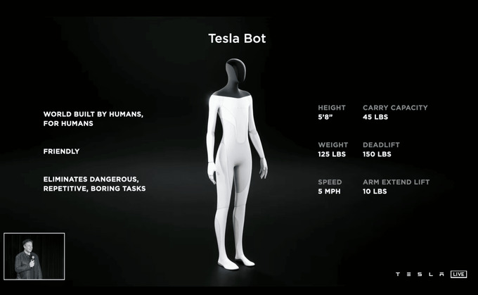 Ilon Mask odamsimon robot prototipini eʼlon qildi. Rejaga koʻra, robotlar ishlab chiqarilishi 2023-yilda boshlanishi kerak, biroq kompaniya ishlanmalarning borishi haqida hisobot bermagan.