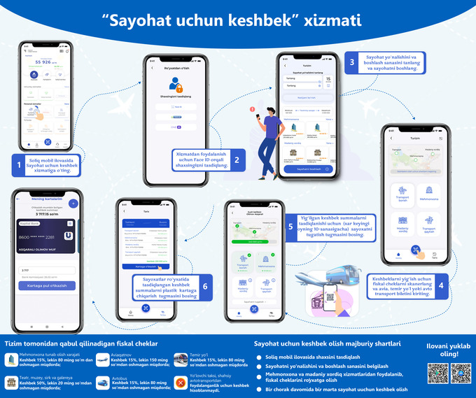 Sayohatdan so‘ng “Sayohatni tugatish” tugmasi bosilib, yig‘ilgan keshbek summalarini shaxsiy mahalliy bank plastik kartasiga o‘tkazish mumkin.