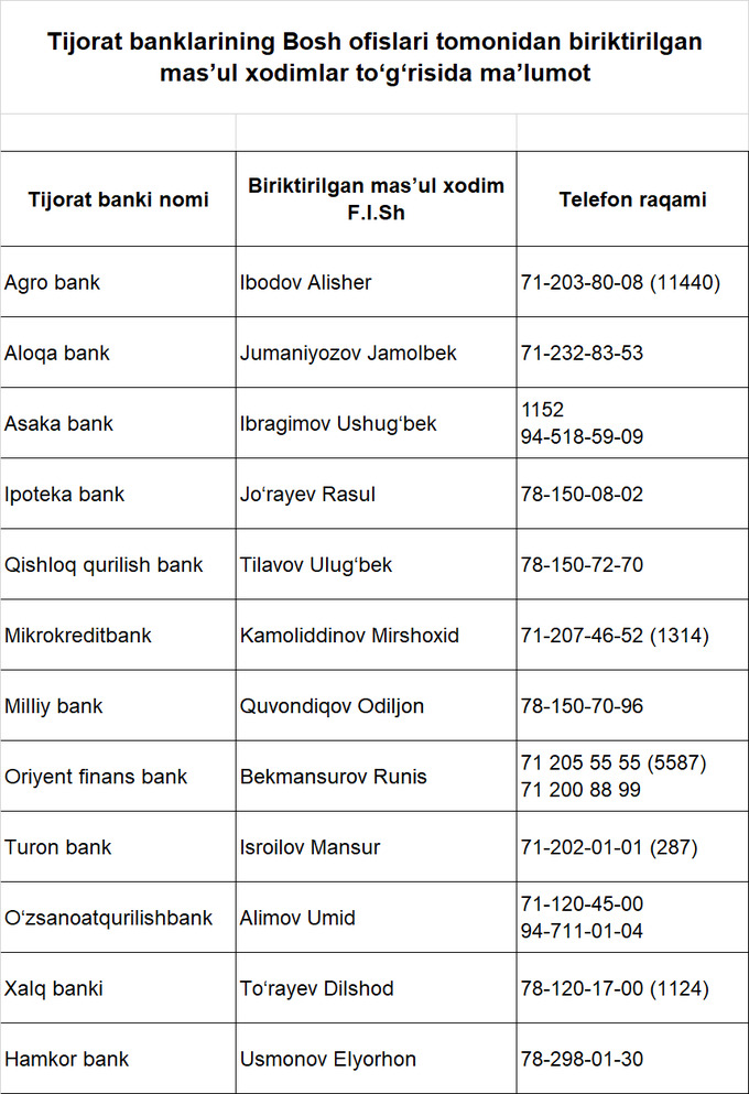 Ta’lim kreditini rasmiylashtirishda muammolar yuzaga kelsa quyida keltirilgan raqamlarga murojaat qilish mumkin: