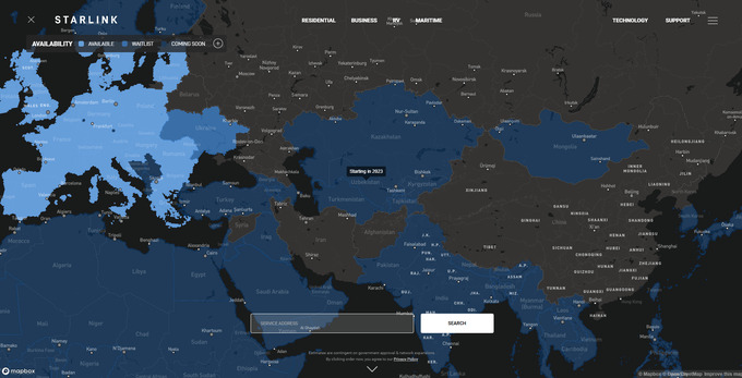“Starlink” veb-saytidagi xaritaga ko‘ra, taqmoq hozir Shimoliy Amerika, Evropa, Avstraliya, Braziliya va boshqa bir qancha mamlakatlarda mavjud.