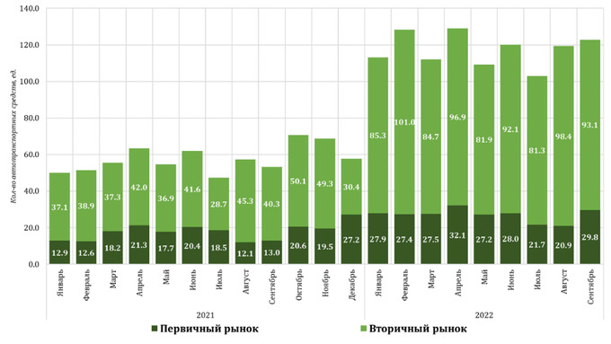 Yangi avtomobillar yetkazib berish hajmining ortishi hisobiga sentabr oyida ikkilamchi bozorda sotuv hajmi avgust oyiga nisbatan 5,4%ga kamaydi.