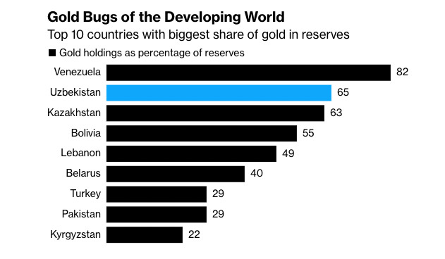 Dunyoning eng ko‘p oltin sotib oluvchi markaziy banklaridan biri ya’ni O‘zbekiston to‘yinmagan, deb yozmoqda “Bloomberg” nashri.
