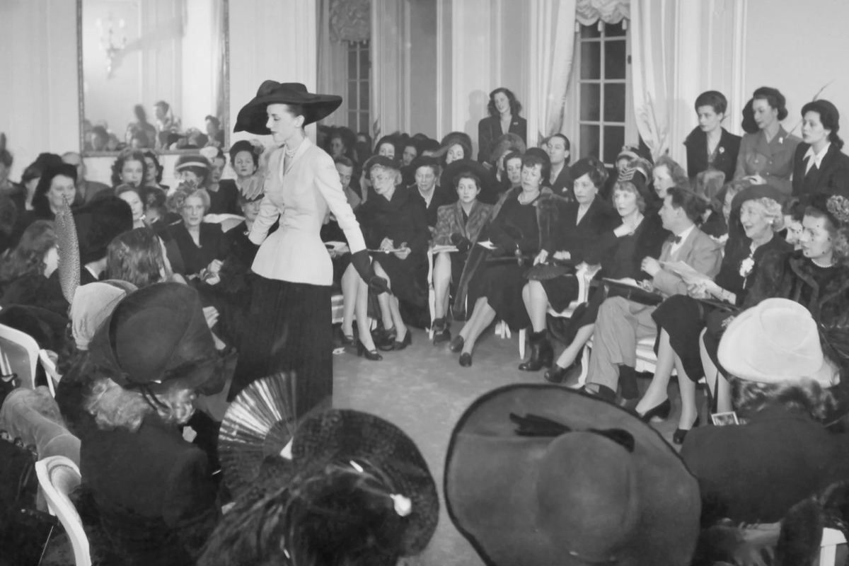 Podiumda modellar etak qismi keng, bel qismi esa kamar, belbog‘ va tasmalar bilan noziklikni aks ettirgan nafis liboslar to‘plamini namoyish etadi. Bunday siluet moda olamida revolyutsiya bo‘lishiga sabab bo‘lib, urushdan keyingi moda uchun yangi mahsulot sifatida kirib keldi.