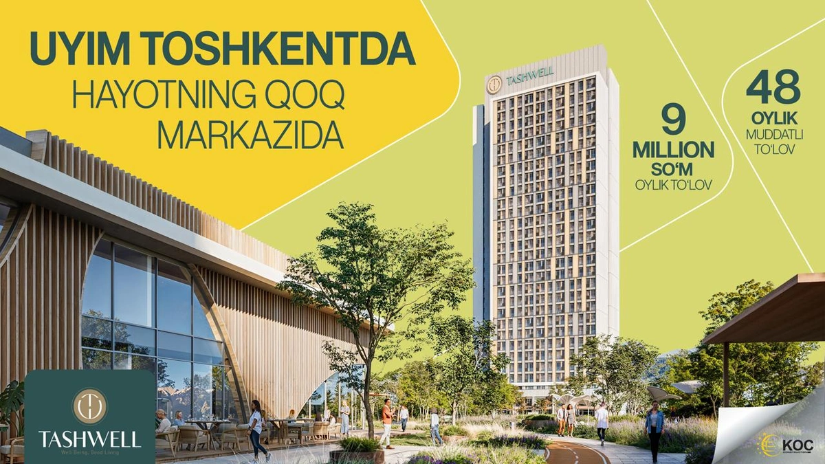 O‘zbekistonning sog‘lom turmush tarziga (wellness) yo‘naltirilgan turar joy loyihasi bo‘lgan Tashwell, shahar hayotining barcha afzalliklarini markazga olgan yangi aksiyasini e’lon qildi. “Uyim Toshkentda, hayot markazida” shiori ostida hayotga tatbiq etilayotgan ushbu aksiya, poytaxt markazidagi nufuzli hayotni qulay to‘lov shartlari bilan bog‘lamoqda. Koç Construction kafolati ostida ishlab chiqilgan loyiha, ham shahar markazida yashashni istaganlar, ham istiqbolli investitsiya qidirayotganlar uchun kuchli muqobil bo‘lib xizmat qiladi.