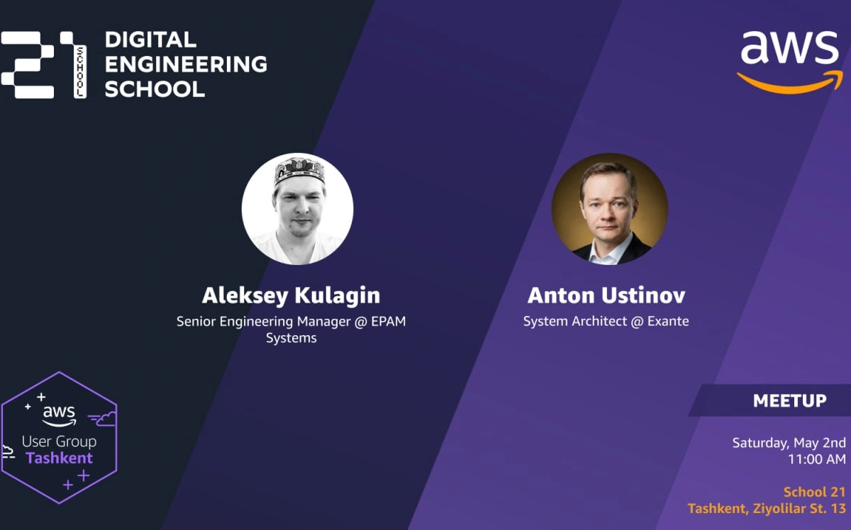 Mitap 2-may kuni soat 11:00 da School 21 maydonchasida bo‘lib o‘tadi. Ishtirok etish uchun havola orqali oldindan ro‘yxatdan o‘tish kerak.