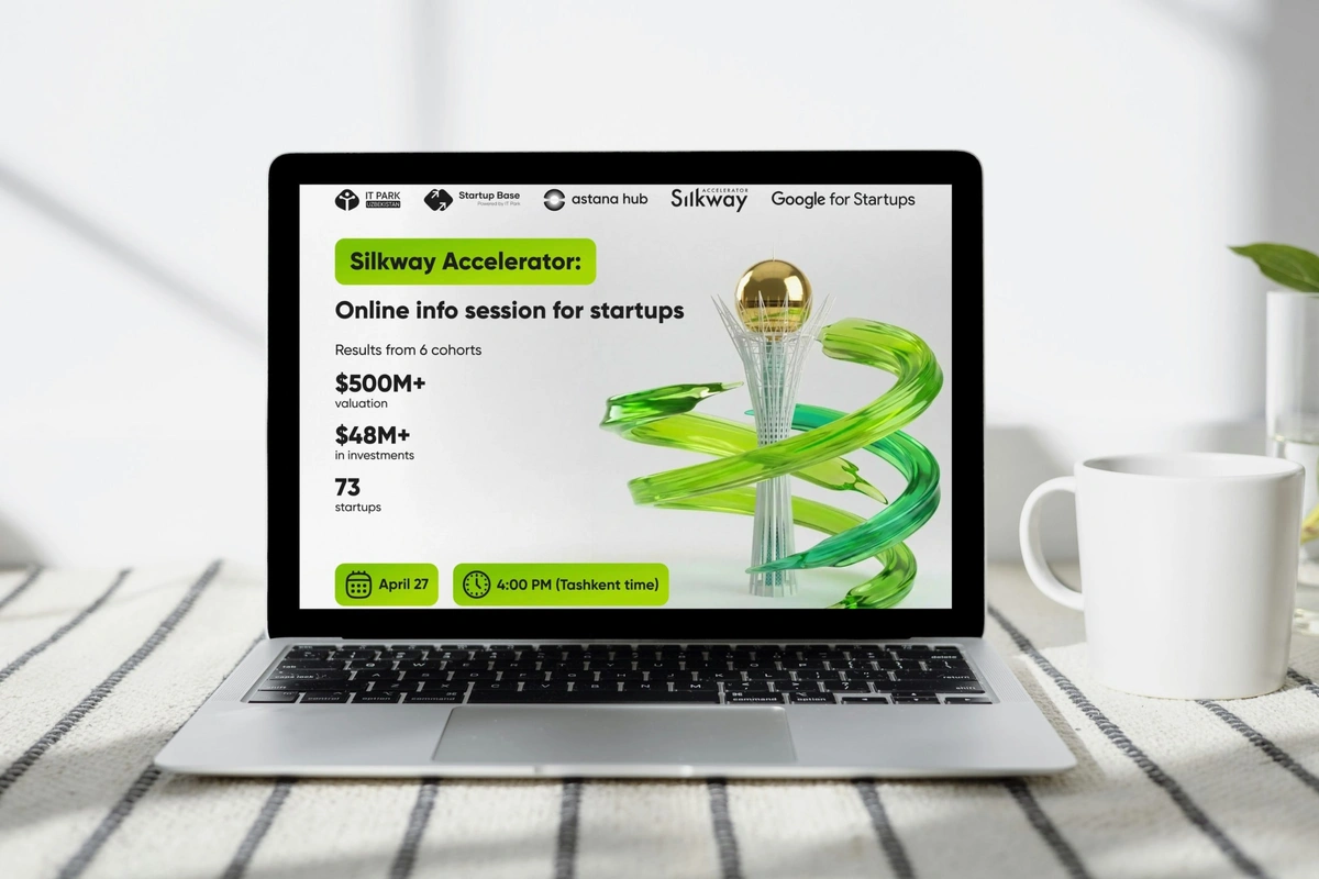 27-aprel kuni Astana Hub va Google for Startups hamkorligida Silkway Accelerator bo‘yicha onlayn infosessiya bo‘lib o‘tadi. Unda 7-batch uchun arizalar, dastur imkoniyatlari va startaplar uchun global o‘sish yo‘llari haqida ma’lumot beriladi.