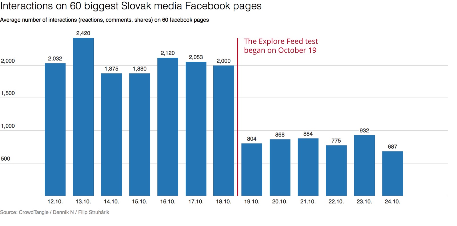 По его данным негативный эффект пришелся не только на одно его издание — охват постов и активность подписчиков в несколько раз упали у 60 крупнейших СМИ Словакии: