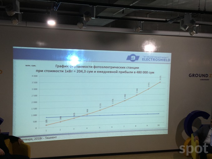 11:08. Выступает Александр Ковалёв, руководитель сектора «Альтернативные источники энергии» АО «Узэлектроаппарат»: