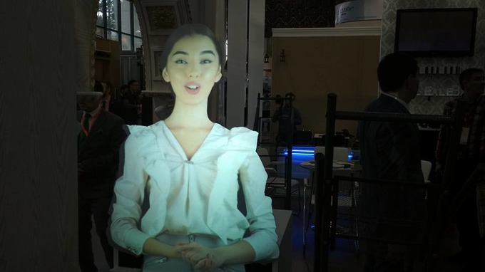Компания по производству дверей и листовых материалов Leben Gruppe представила на своем стенде вот такой «живой» экран в облике девушки: