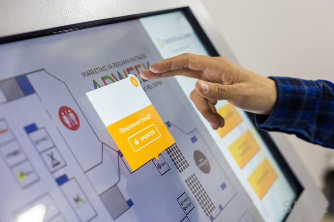 Недавно мы презентовали эту систему на Неделе маркетинга и рекламы Adweek, а по итогам сделали отчет по проходимости и посещаемости стендов. Во время конференции мы пустили планшет по залу и провели BTL-опрос, ответы сформировали в отчет и вывели результат в режиме онлайн.