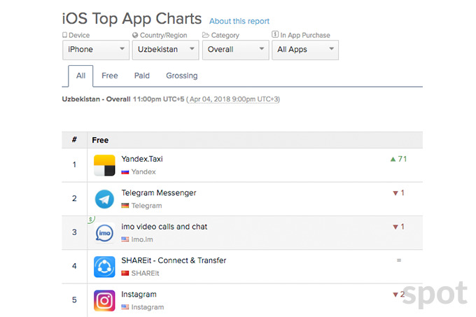 Приложение «Яндекс.Такси» возглавило App Store Узбекистана, свидетельствуют данные App Annie.
