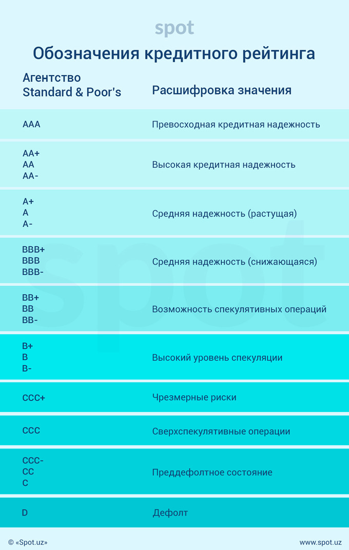 На стороне Узбекистана сегодня такие факторы, как низкий внешний и внутренний долги, очень низкий корпоративный долг, хорошая кредитная история — поскольку республика всегда платила по своим долгам, и целый ряд других факторов. В плюс также будут играть активно проводимые реформы в банковском секторе и на финансовом рынке в целом, а также усилия правительства по формированию более благоприятной среды для развития частного предпринимательства.