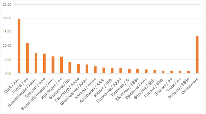 Например, на страны с рейтингом от S&P в инвестиционном диапазоне (то есть от ААА до ВВВ, всего 21 страна из более 130) за 2014−2016 годы в совокупности пришлось около 90% чистого притока прямых иностранных инвестиций.