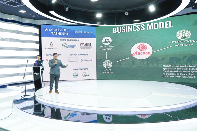 Стартапы выступили перед панелью жюри, куда вошли: Абдулахад Кучкаров (директор Ground Zero), Вячеслав Кан (основатель Torg.Uz/OLX Uzbekistan), Анвар Ирчаев (директор Orient Capital Management), Алина Розанова (менеджер по Центрально-Восточной Европе и Центральной Азии в Seedstars) и Одилжон Тожиев (первый заместитель Председателя Центрального комитета Союза молодежи Узбекистана).