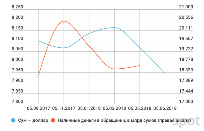Курс доллара к узбекскому суму и объем наличных денег в обращении