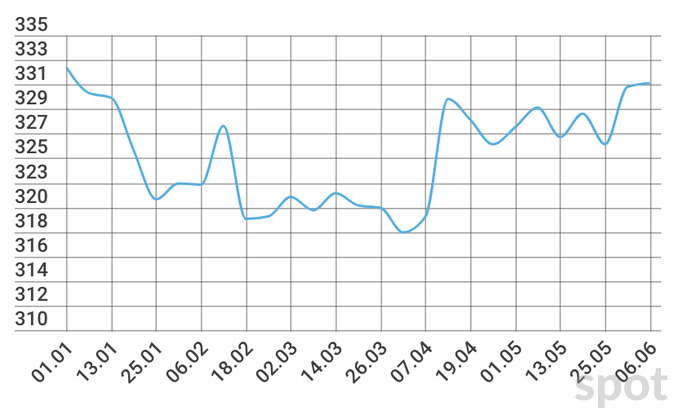 Курс доллара, изначально установленный на отметке 8100, к середине февраля вырос до 8188,33 сума. Затем сум начал укрепление — и 11 июня доллар стоил уже 7909 сумов.
