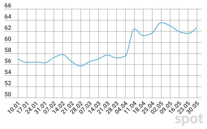 На неделе с 4 по 10 июня коммерческие банки снизили курс покупки долларов до 7870−7880 сумов, что было индикатором ожиданий дальнейшего укрепления сума. Эти ожидания оправдались, и 8 июня доллар на бирже торговался ниже отметки 7900 сумов.