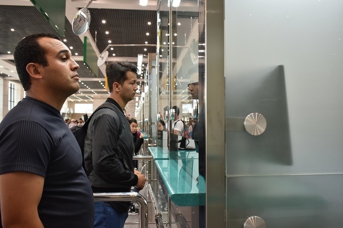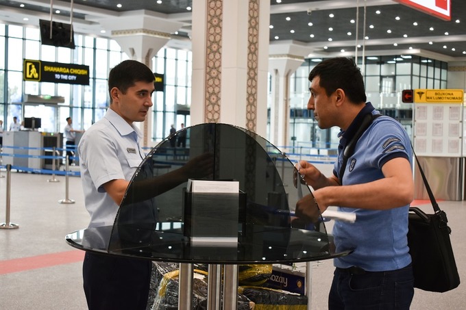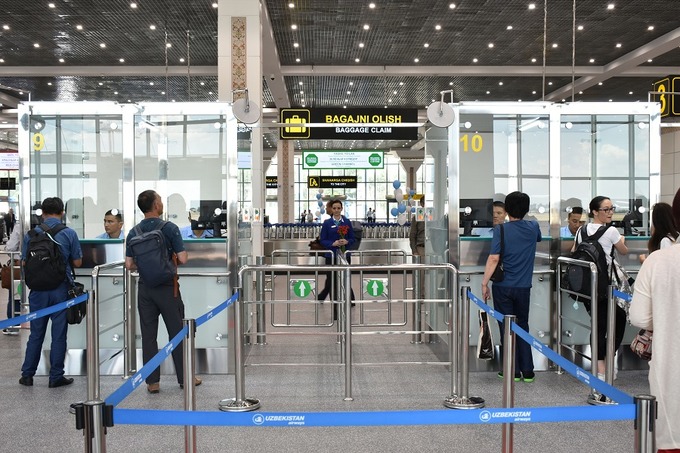 «При прохождении паспортного контроля выделены отдельные полосы для обслуживания пассажиров на инвалидных колясках, с детьми, пожилых людей, иностранцев. Один из пунктов рассчитан на пассажиров с электронными визами. Это сделано для увеличения потока туристов в страну. Количество стран, жители которых будут приезжать в Узбекистан по электронной визе, будет увеличиваться. Аэропорт — первая дверь, которая открывается перед иностранными туристами. Первые впечатления они получают именно в аэропорту. Поэтому делается все, чтобы им было удобно здесь, и чтобы пассажир с этого терминала выходил с улыбкой», — подчеркнул Руслан Фидойи.