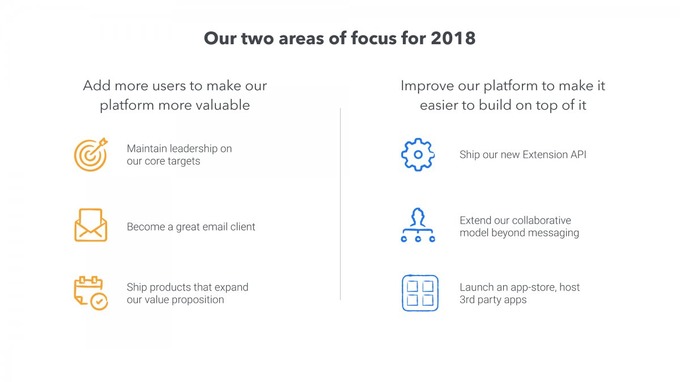 «Две области, на которых мы будем фокусироваться в 2018 году. Привлечение новых пользователей. Совершенствование платформы».