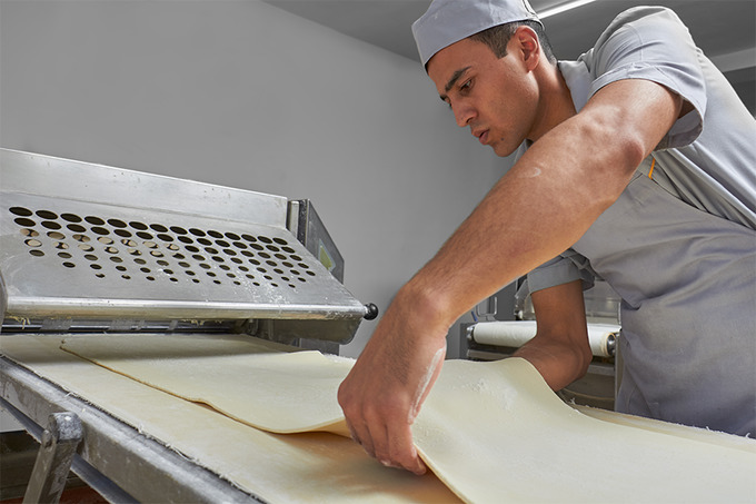 Для производства мы купили тестораскаточную машину немецкой фирмы Fritsch. На это оборудование я обратил внимание еще в 2002 году на выставке в Москве. Уже тогда мы собирались заключить с ними контракт на 108 тысяч евро, но потом сели вместе с бухгалтером и решили, что пока сумма для нас великовата. Смогли сделать это, увеличив обороты и прибыль.