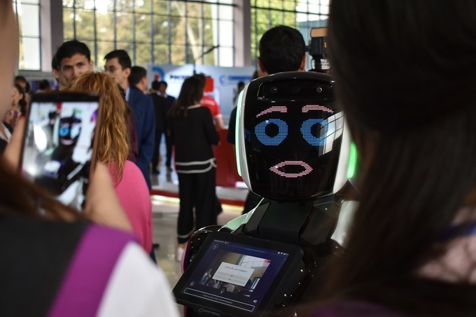 Но главным достоянием экспозиции стал милейший робот, который «курсировал» по павильону «Узэкспоцентра», общался с посетителями, развлекал их и улыбался для очередного селфи.