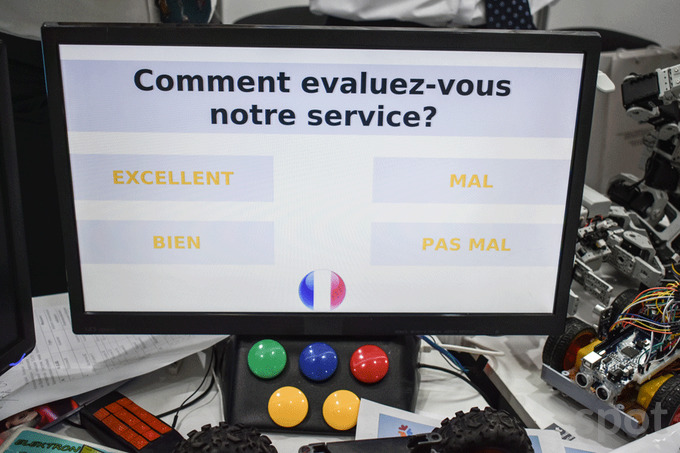 Студенты Ташкентского университета информационных технологий подготовили к выставке электронный опросник на семи языках. Это микрокомпьютер без процессора. Само голосование происходит за счет нажатия разноцветных кнопок.