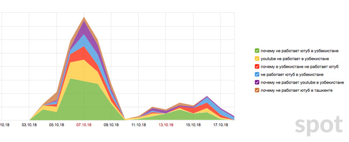 Начиная с того же дня сервис Downdetector показывает, что проблема накрыла практически весь Узбекистан, причем в других странах если неполадки и появляются, то время от времени и не так ярко выражены: