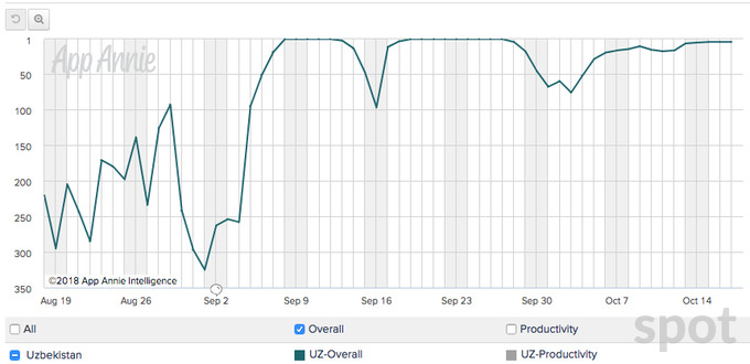 Это привело к тому, что приложение для iOS в Узбекистане уже больше 10 дней является самым скачиваемым, хотя до этого с трудом входило в первую десятку: