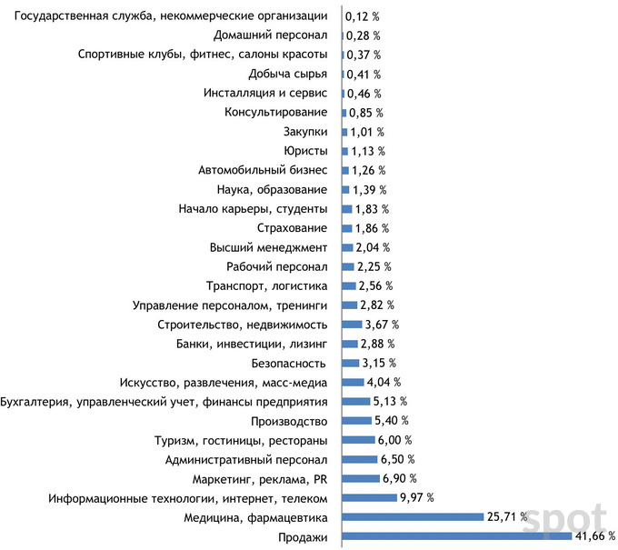 Реже всего работодатели искали специалистов для государственной службы, дома, спортивных клубов и салонов красоты, добычи сырья, инсталляции и сервиса: