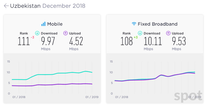 Таким образом, сервис не заметил резкого увеличения скорости интернета в Узбекистане в 2018 году: