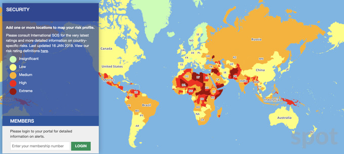 Лучшие показатели в этом плане у Финляндии, Норвегии, Швейцарии, Исландии и еще нескольких стран — там риск незначительный. У остальной Западной Европы, а также США и Австралии уровень риска такой же, как и у большей части Узбекистана — «низкий». Высокий уровень риска в Пакистане, Чечне, Египте и других странах. Экстремальный уровень риска, в Сирии, Ираке, Афганистане, Донецке: