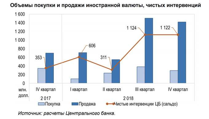 Общий годовой спрос на иностранную валюту в 2018 году составил $10,4 млрд, что в 1,5 раза больше показателя 2017 года, говорится в обзоре Центрального банка касательно денежно-кредитной политики за IV квартал 2018 года.