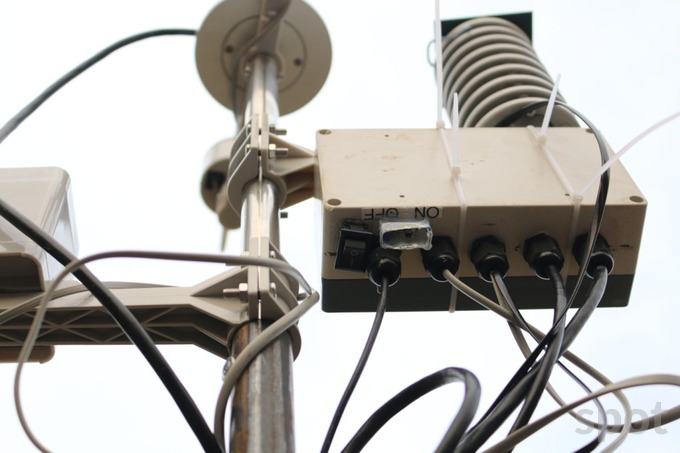Метеостанция, функционирующая на основе солнечной энергии, оснащена датчиками скорости ветра, направления ветра, интенсивности солнца, измерения дождя, температуры воздуха, влажности воздуха, температуры почвы, влажности почвы и солености почвы.