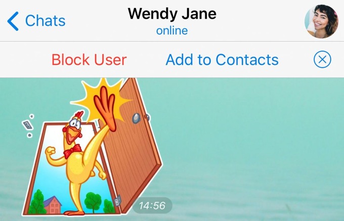 Теперь во всех новых чатах отображается кнопка Add to Contacts («Добавить в контакты»). Она позволит быстро добавить в контакты любого пользователя, который пишет — даже если не знать его номера. Для нежелательных сообщений — кнопка Block User («Заблокировать») находится левее.
