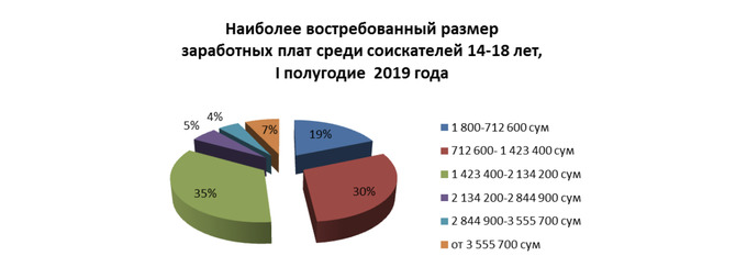 Наиболее востребованный размер заработных плат среди соискателей 14−18 лет составляет диапазон от 1 423 400 до 2 134 200 сумов.