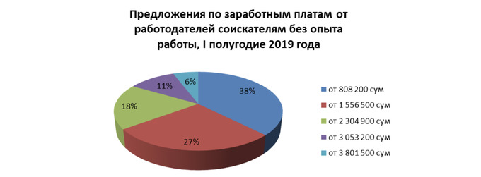 38% работодателей готовы предложить заработную плату соискателям без опыта работы в размере от 808 200 сумов.
