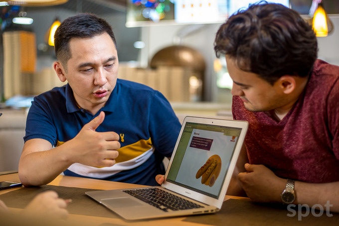 «В стритфуде всегда много общения с людьми. И мы стараемся сами обслуживать, рассказывать клиентам о продукте. Продукт ведь новый для этой локации. Каждый из нас уже успел побыть технологом: мы сами разрабатывали рецепт, жарили, пробовали», — Олим Уктамов.