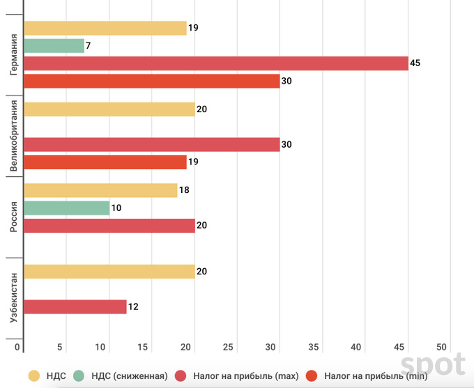 Во всех странах ставки корпоративного налога на прибыль выше, чем ставки по НДС.