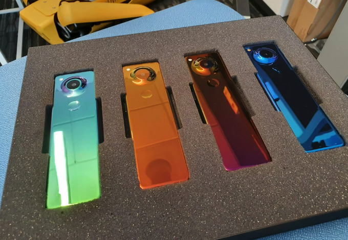 Задняя панель сделана из материала, который переливается разными цветами в зависимости от того, под каким углом смотреть.