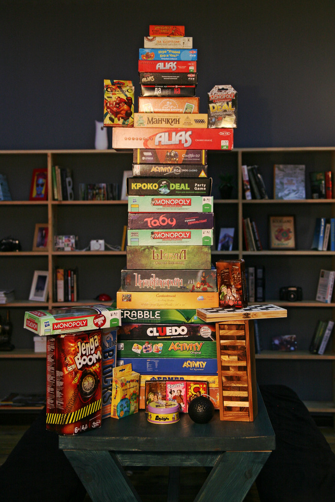 На старте было четыре настольные игры — какие-то мы купили в Москве, какие-то нашли у кого-то дома. Честно говоря, мы не предполагали, что все «настолки» будут заняты одновременно. Когда же поняли, что даже 10−15 игр иногда не хватает, начали докупать еще.