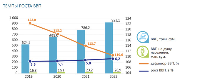 Основным показателем экономического развития страны является валовой внутренний продукт (ВВП). В 2020—2022 годах темпы роста реального ВВП прогнозируется на уровне 5,5% — 6,2%.