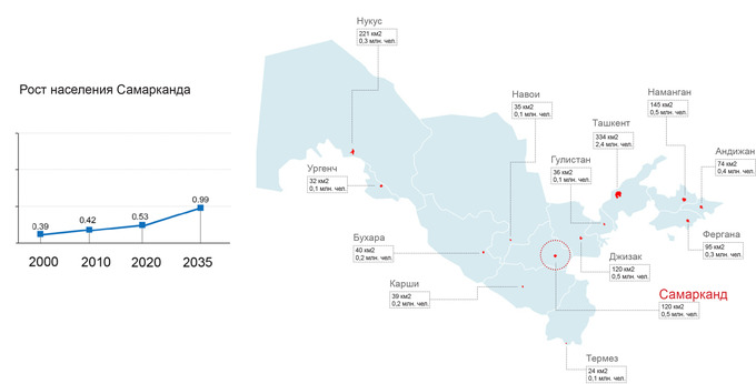 Самарканд будет развиваться и расширяться с непредсказуемым темпом и масштабах. Ожидается, что он станет вторым центральном городом нашей страны. Это привлечет большой поток населения с окружающих регионов.