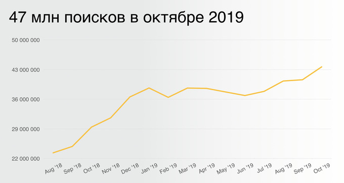 В мае «Поиском» пользовалось 2,9 млн человек, сейчас уже порядка 3 млн. Если же говорить об аудитории всех сервисов «Яндекса» в Узбекистане, то это около 3,5 млн человек. В октябре у нас было 47 млн запросов: