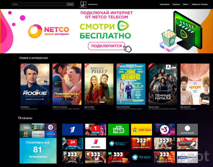 На сайте можно также смотреть более 50 телеканалов в режиме онлайн.
